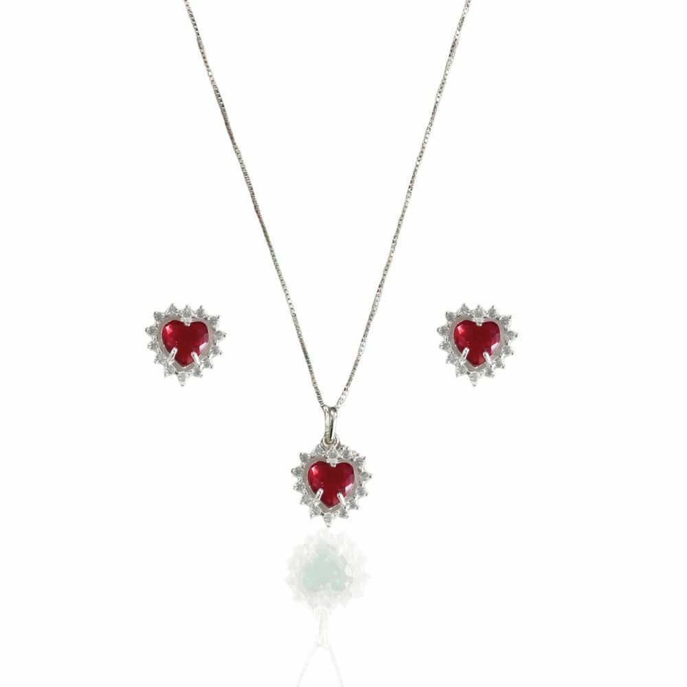 Encante-se com a delicadeza e o brilho marcante deste conjunto em formato de coração, com zircônia central e borda cravejada. Confeccionado em prata 925 hipoalergênica, é ideal para destacar sua beleza com um toque sutil de sofisticação.