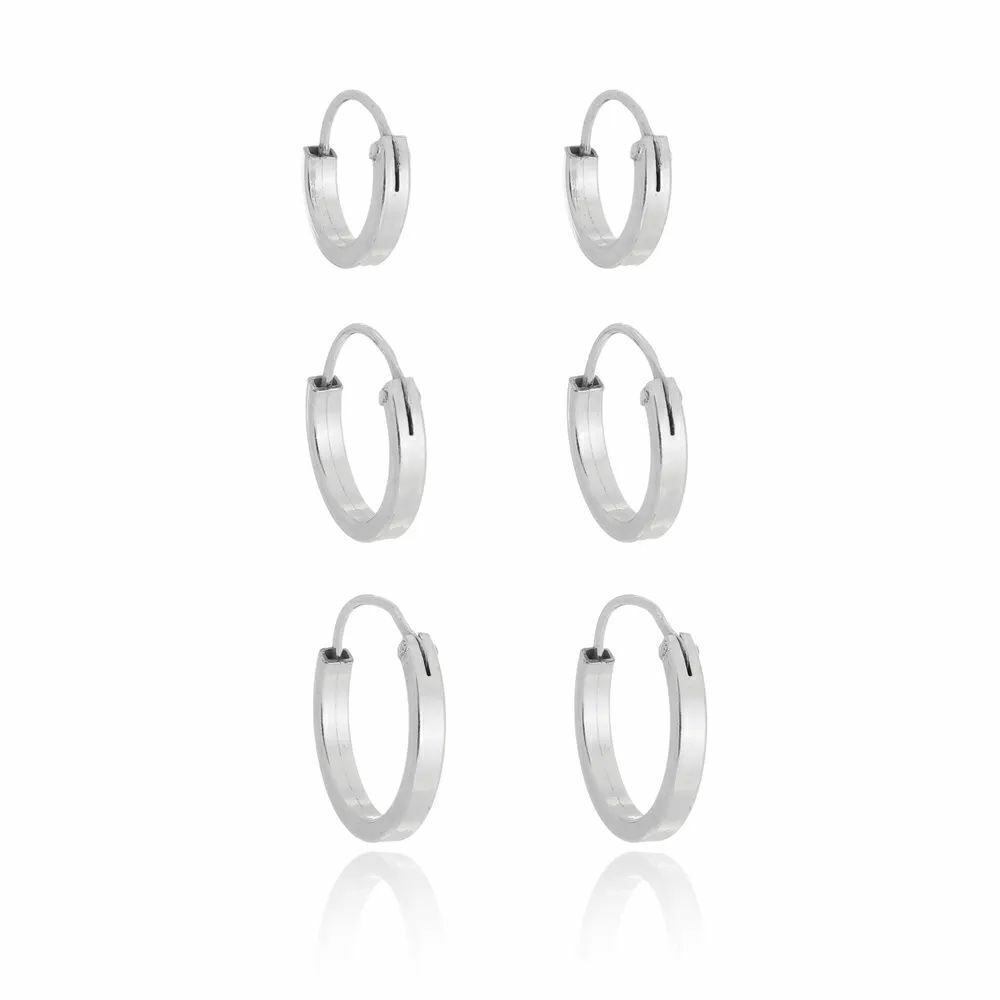 O Trio de Argolinhas Fio Quadrado em Prata 925 é a escolha perfeita para quem busca elegância minimalista com um toque moderno. Com design clean e contemporâneo, cada argolinha é confeccionada em fio quadrado, o que confere sofisticação e diferenciação ao visual clássico das argolas tradicionais.